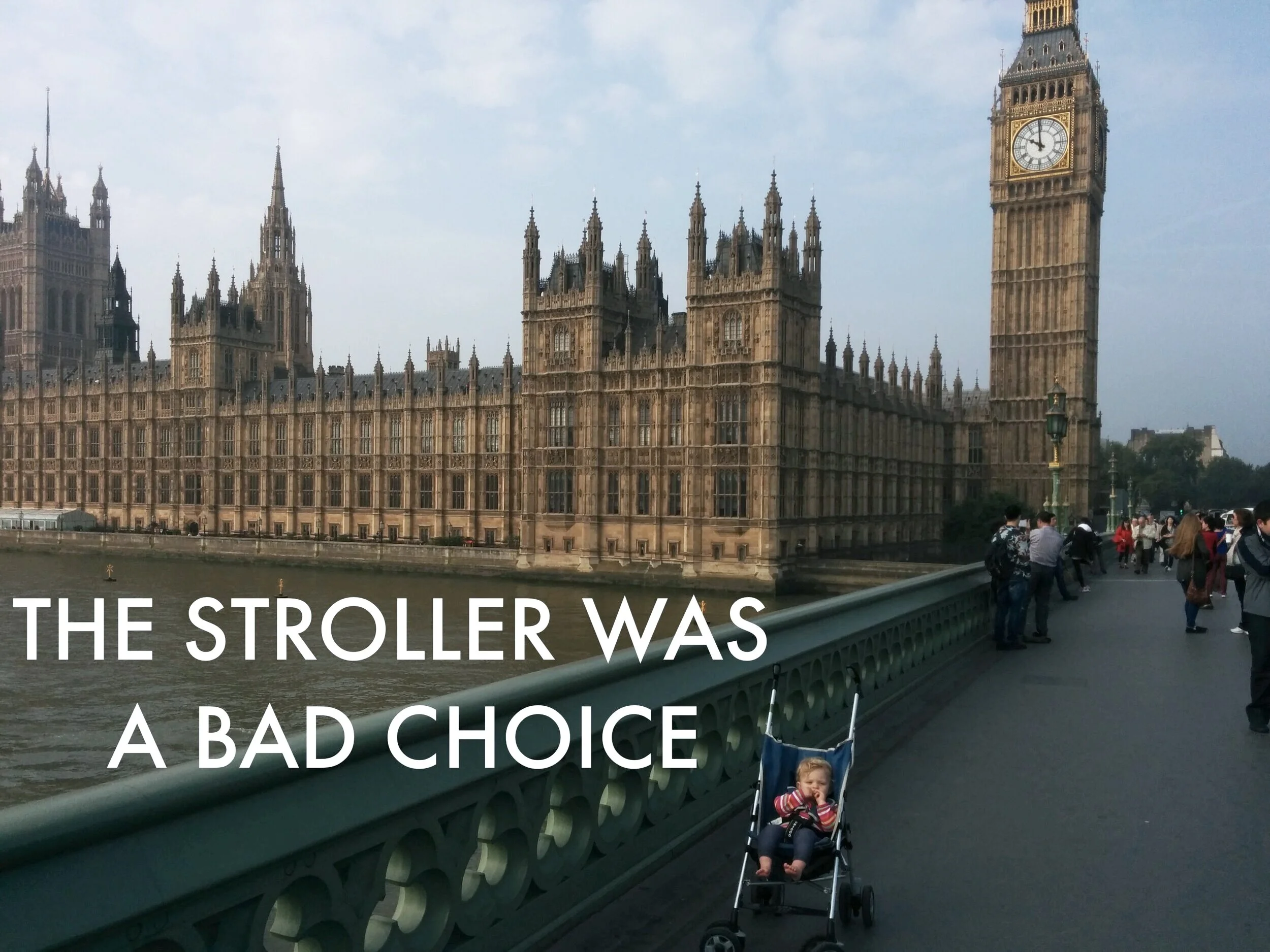 Up until and just after the kid learns how to walk, strollers are often inferior to carriers and backpacks (for strapping, semi-recently-young lads). Our 1st kid loved carriers, and when she was 13 months old, we accompanied my partner on a month long work trip to London. We brought along the stroller in the picture below, and literally only used it for that one walk in the entire month, which is all to say that sometimes, less is more, so maybe don’t pull out all the stops to bring a stroller somewhere.